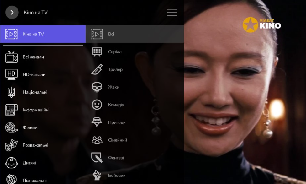 “Кіно на ТБ”  – це зручний функціонал, в якому зручно зібрані кіно, серіали та телепрограми, які транслювались в ефірі за 7 днів. Кожен користувач може насолодитись архівним контентом в будь-який зручний для нього час.